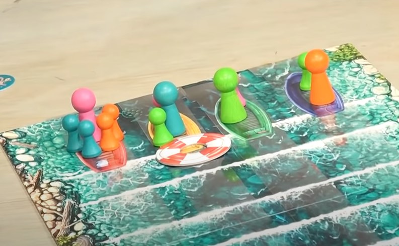 ・テーブルの端からおもり付きの長ーいフィルムを垂らし、コマを移動させることでズリ落ちをコントロールするというゲーム。ボドゲにしてはかなり「物理」に振ったゲームで、新感覚の面白かった。冷静に考えると戦略性とかなにもないような気もするんだけど、物がズリ落ちていく様子がかなり面白いので全然良いと思う。