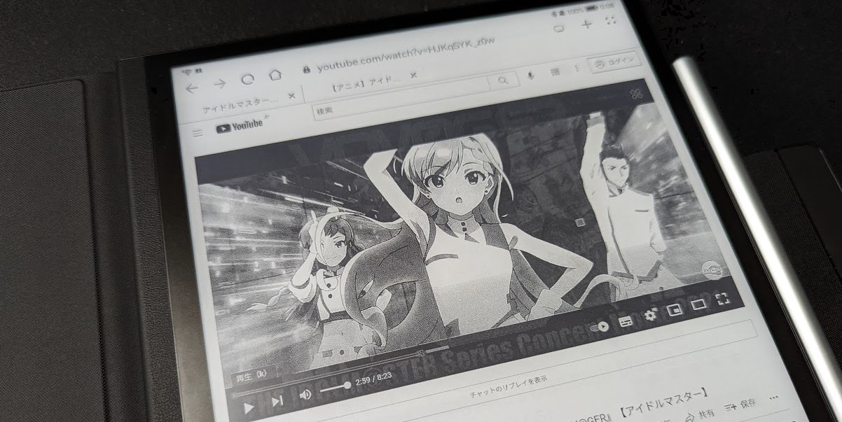 ・電子ペーパーは、電子インクに電圧をかけて色を変えるのでそれ自体が発光しない、子どものおえかきボードみたいな表示様式のこと。光で目が疲れにくいので読書向きだとされている。このタブで表示できるのはモノクロのみ。