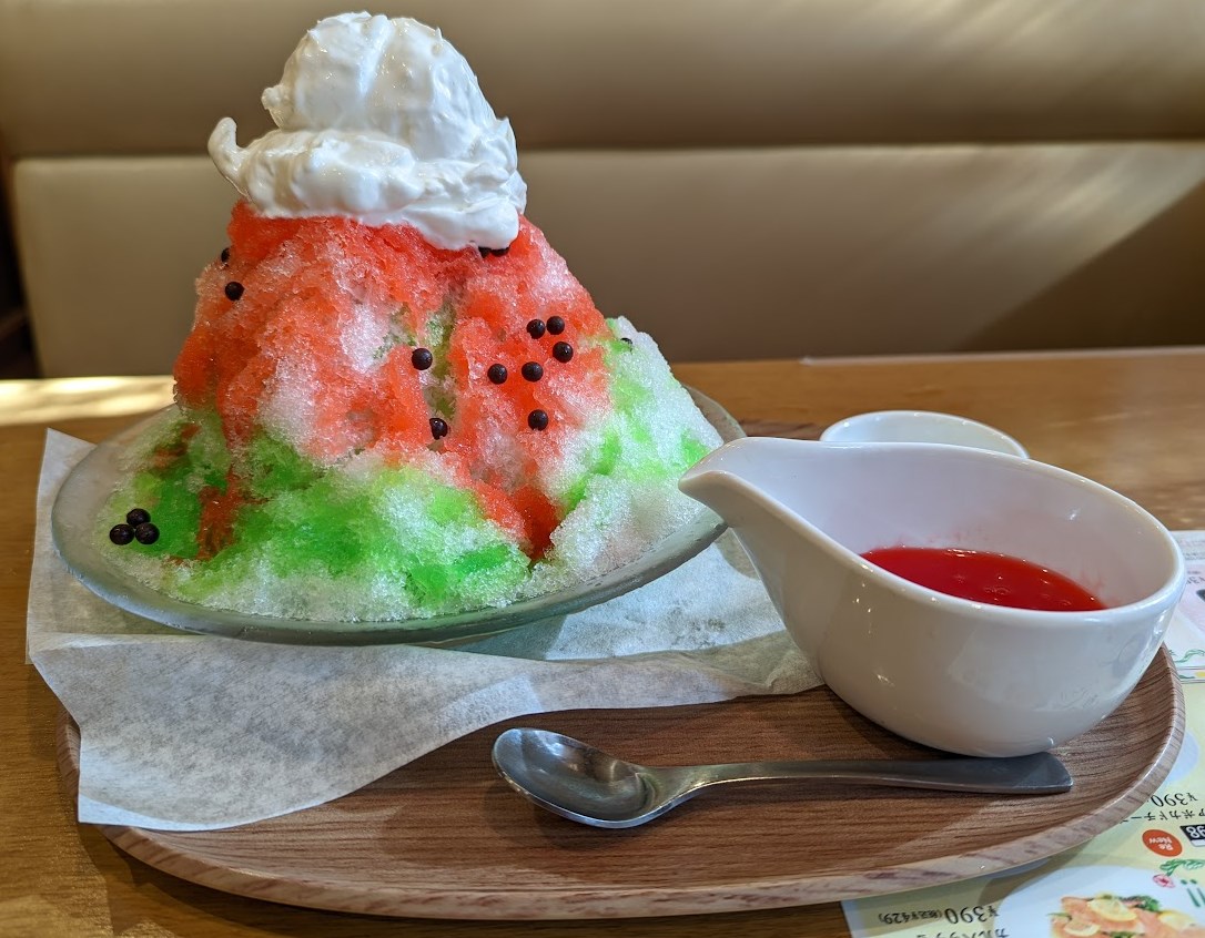 ・ココスのスイカかき氷がかなり良かった。本当はフルーツがいろいろ入った「しろくまかき氷」目当てだったものの品切れのためこちらを食べた。結果オーライのおいしさ。