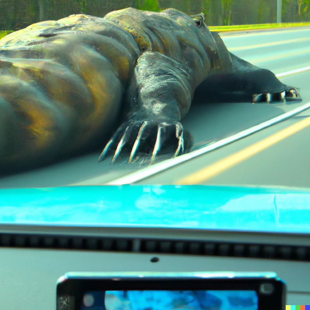 ・「車載カメラの映像に映り込んだモンスター」、というお題で画像生成している人がいて面白かったので私も真似してみたが、サービスごとにAIの性格がよく出る。