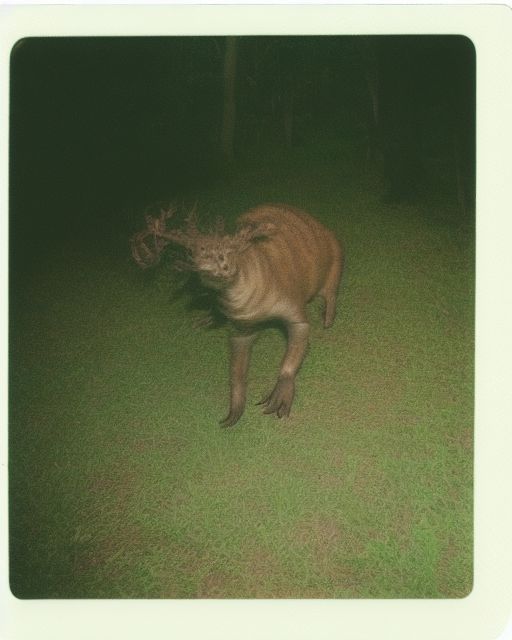 ・「インスタントカメラで撮影」という文言を入れて生成すると、偶然撮影されたUMAが簡単にとれる。かつて『秘密の動物誌』に興奮した私からすると、ボタンひとつでこんな写真をいくらでも見られるのは夢のようだ。しかし、逆説的にUMAという存在の信憑性はこれで完全にトドメをさされてしまった。もはやなにをもって信じればいいのか。実際に捕まえてくるしかない。