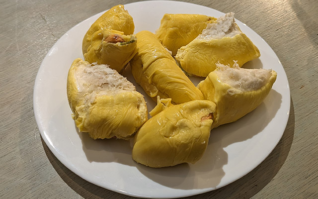 ・ドリアン。ほんとに表現するのが難しい旨さだ。苦手な人がいっぱいいるのもわかるし、自分だって「旨い」とまではとてもじゃないけど言えない。でもハマれるきっかけの尻尾は確実に今回掴めた気がする。臭いだけじゃないんだ……。