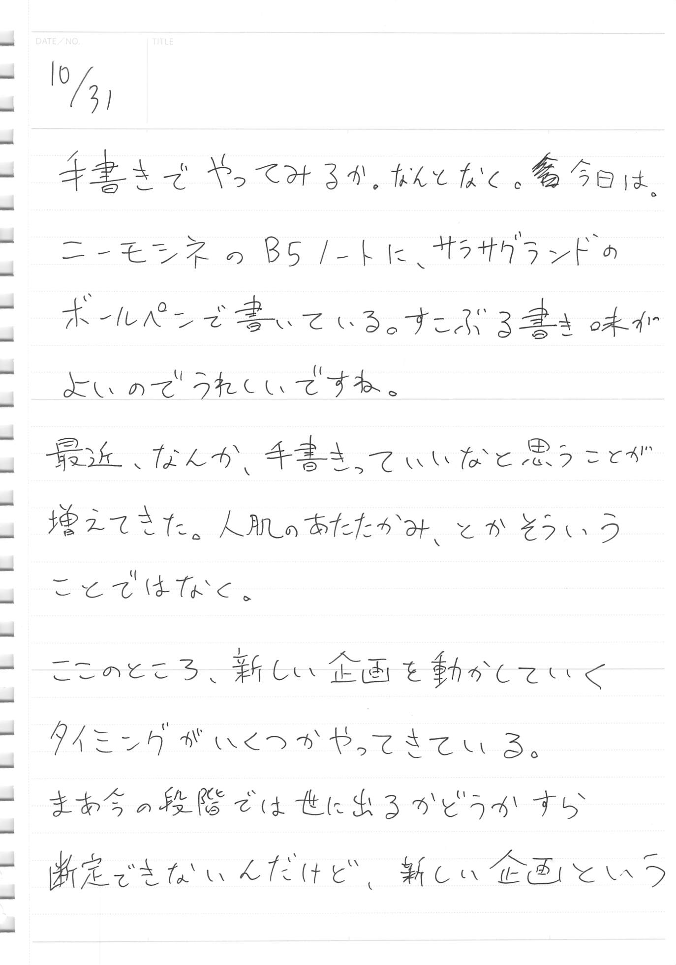 「字は手が書く」2023年10月31日の日記