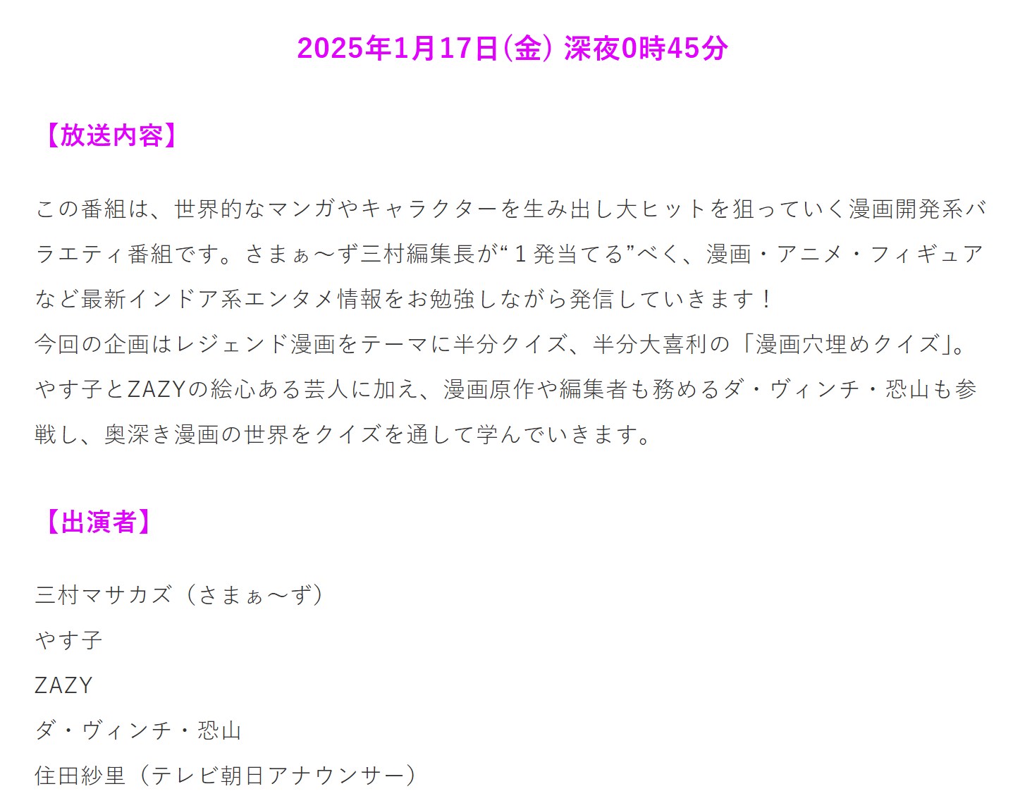 ・17日深夜のテレ朝『バズマンTV』にゲスト出演しています。なんで?